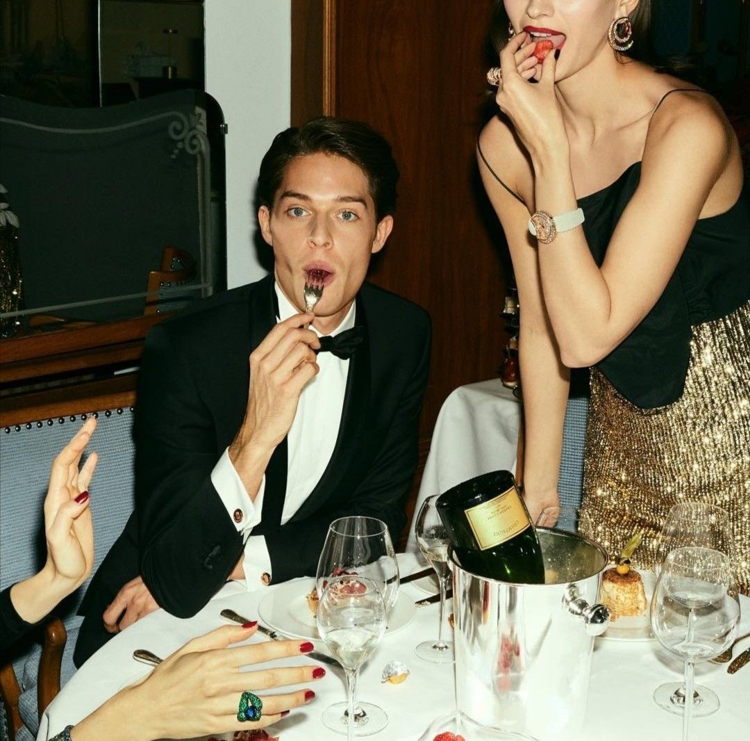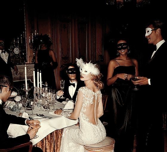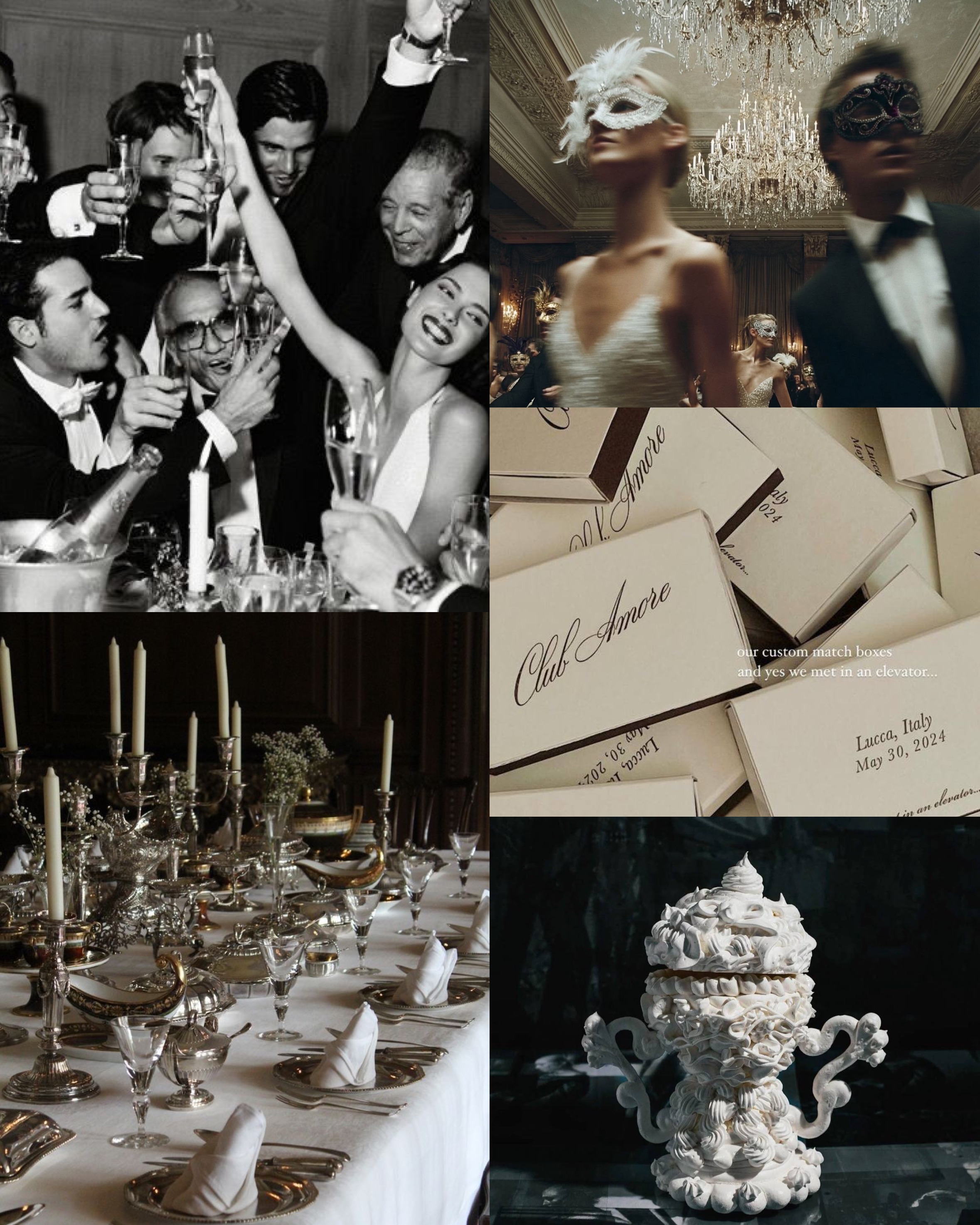 Historic salons, grand staircases and palace gardens provide the backdrop for a sequence of carefully composed scenes designed to evoke the atmosphere of an old European estate celebration.